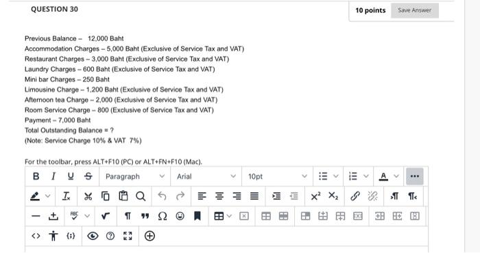 Solved Question 30 10 Points Save Answer Previous Balance Chegg Com